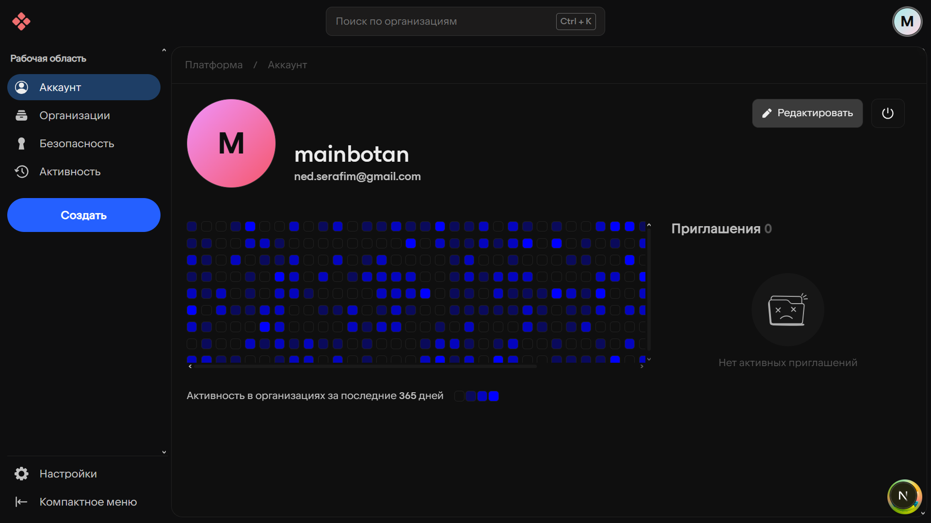 Граф активности предназначен для суммаризации всех действий вашего аккаунта в рамках организаций.