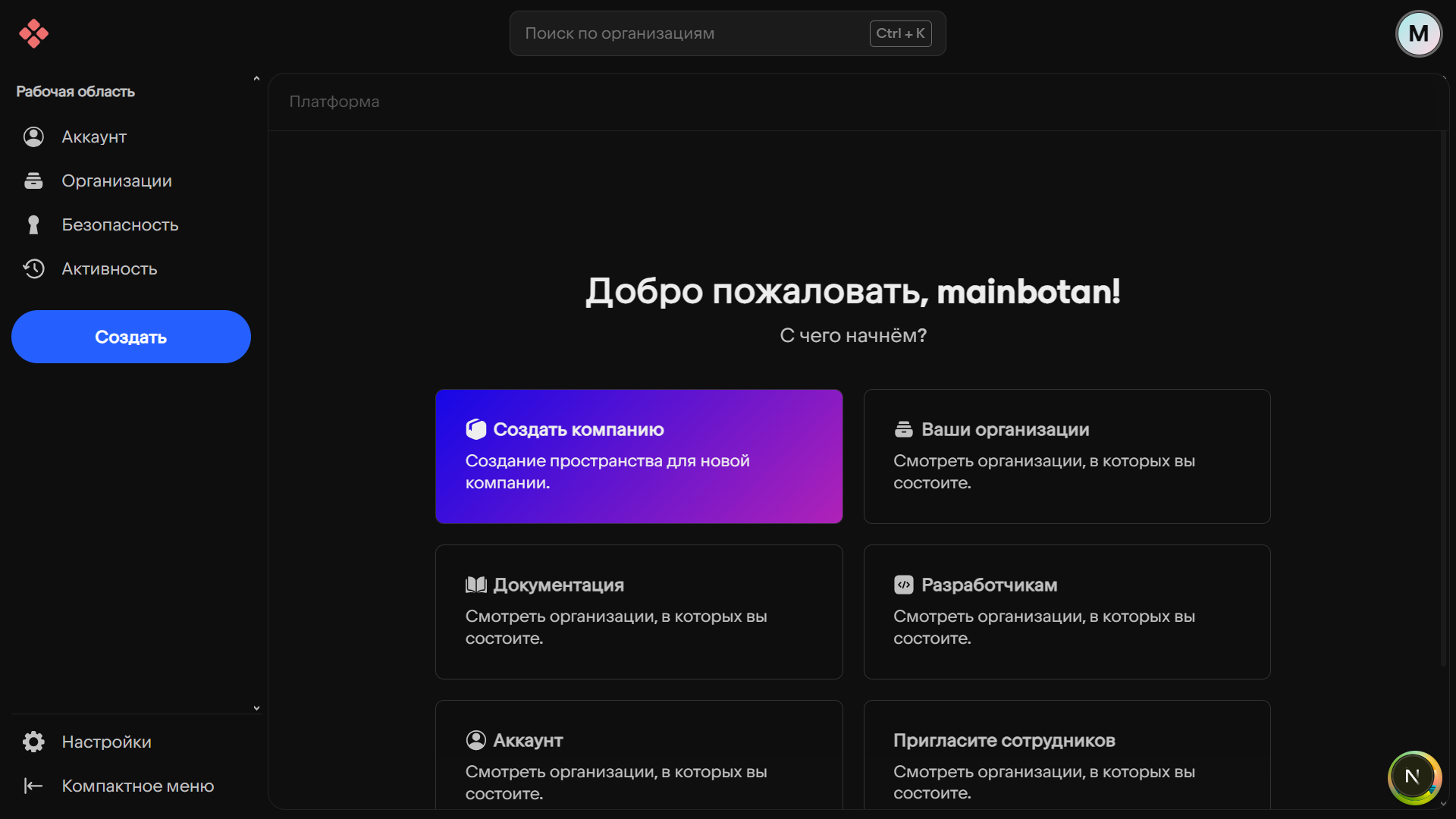 Используйте сочетание клавиш Ctrl+K (английская раскладка) для быстрого перемещения между пространствами учётных систем и доступа к наиболее используемым действиям.